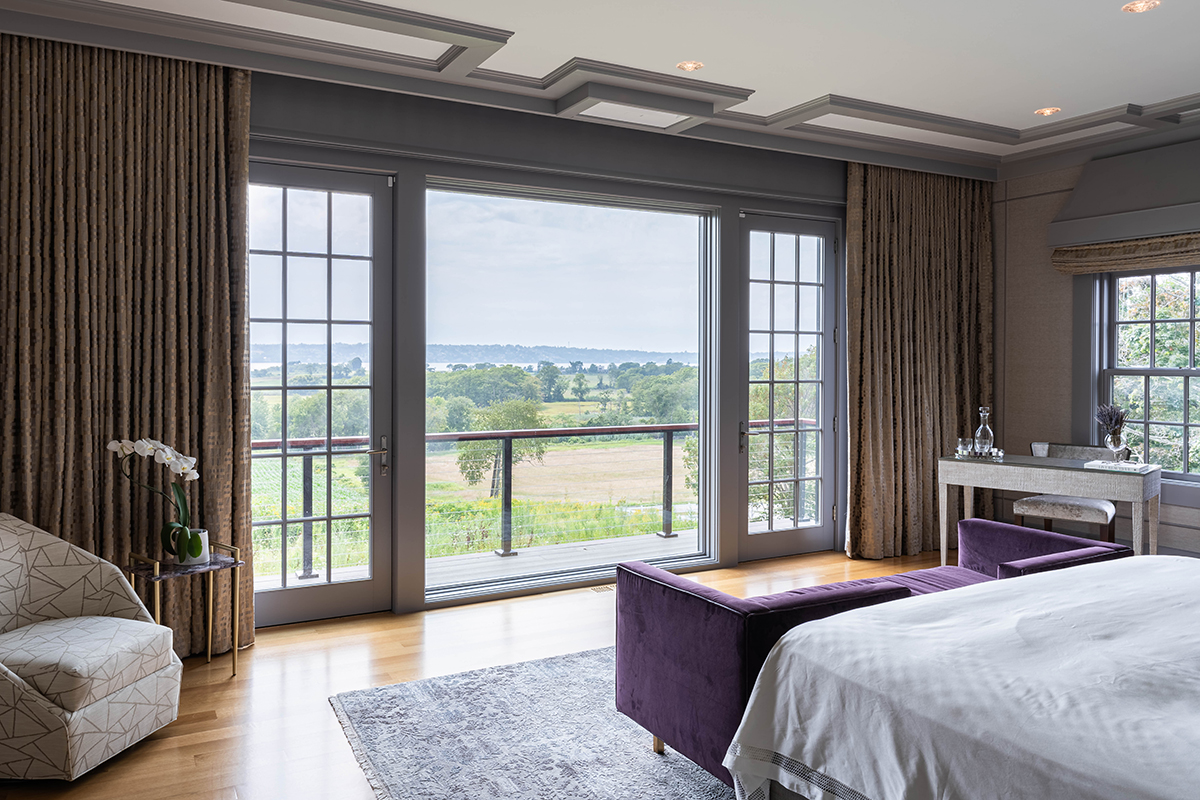 The past year, we’ve been lucky enough to work on this exciting project in Tiverton, Rhode Island. Designed by Tim Reid and our own Aaron Stallings, this luxury home features sweeping views, plenty of windows, a robust smart home system, and utilizes lighting to great effect. These features are most on display in the home’s master bedroom. The master bedroom features Italian crystal downlighting from Leucos, custom Lutron drapery and roller shades, and a private cinema experience reminiscent of old-school movie theaters. Everything in the room can be controlled via Lutron SeeTouch keypads, allowing the homeowners to select from preset scenes designed to highlight the unique design of the space.